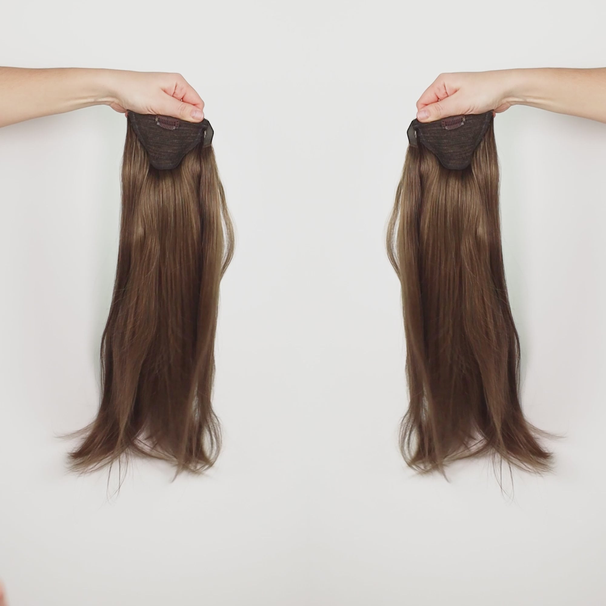 Nasz kucyk jest doczepiany na klipsie i posiada dodatkowe pasmo włosów, które zasłania mocowanie tworząc dyskretne i naturalne łączenie. Kucyk wygląda jak Twój własny!