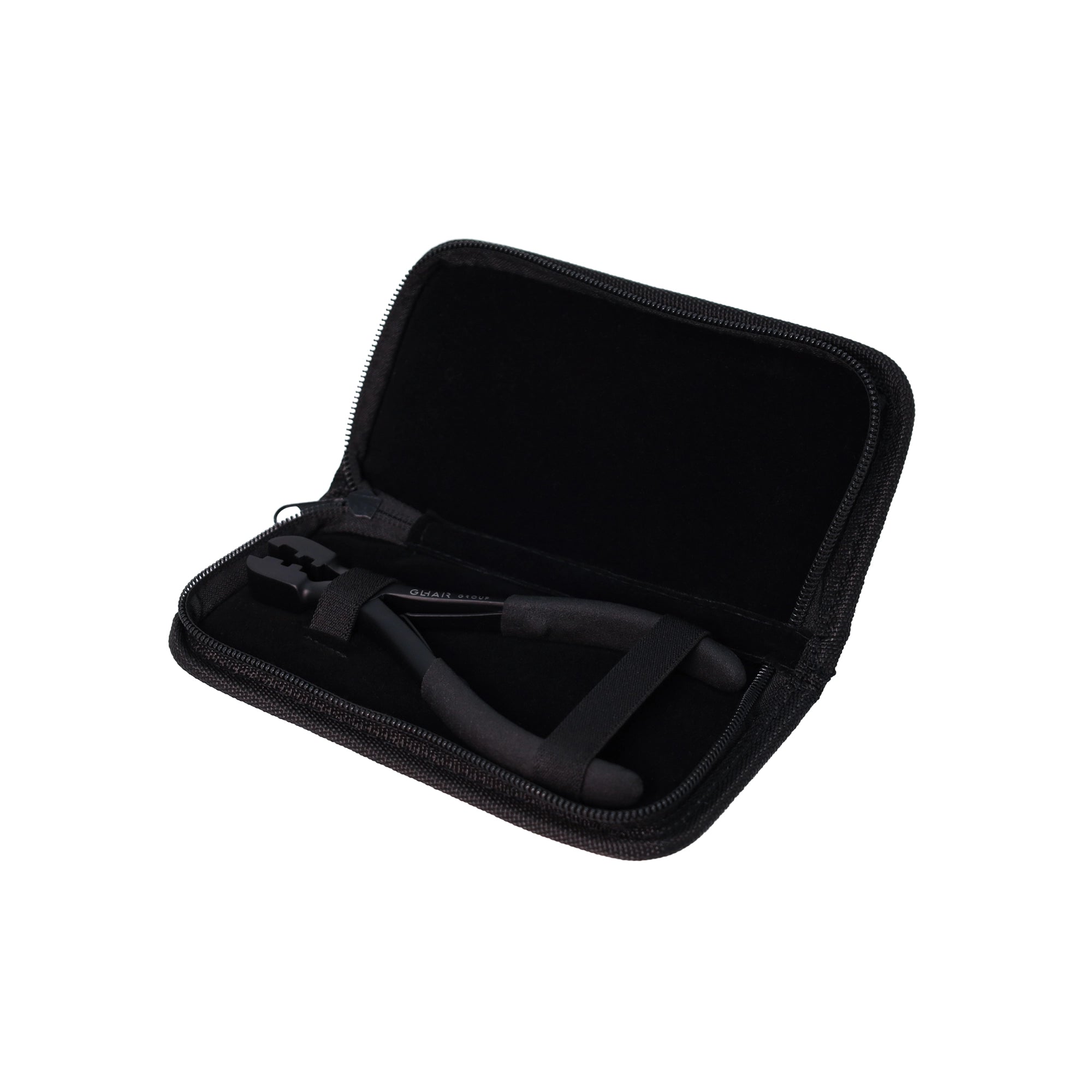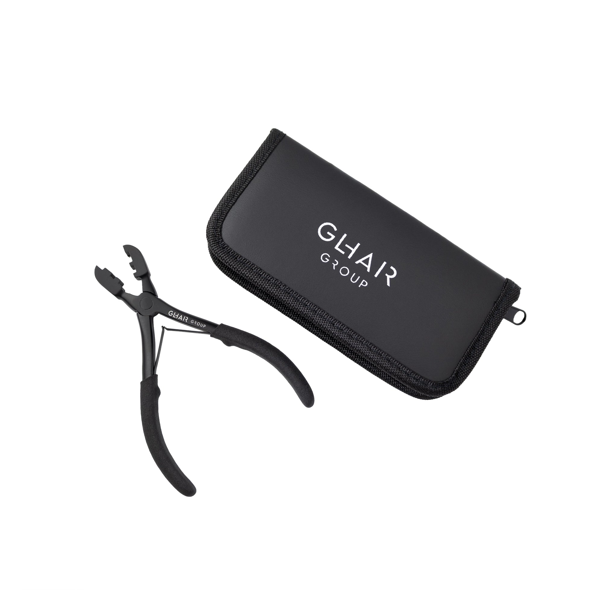 Förutom tängerna ingår även ett elegant svart fodral med GL Hair Group-logotyp i setet.